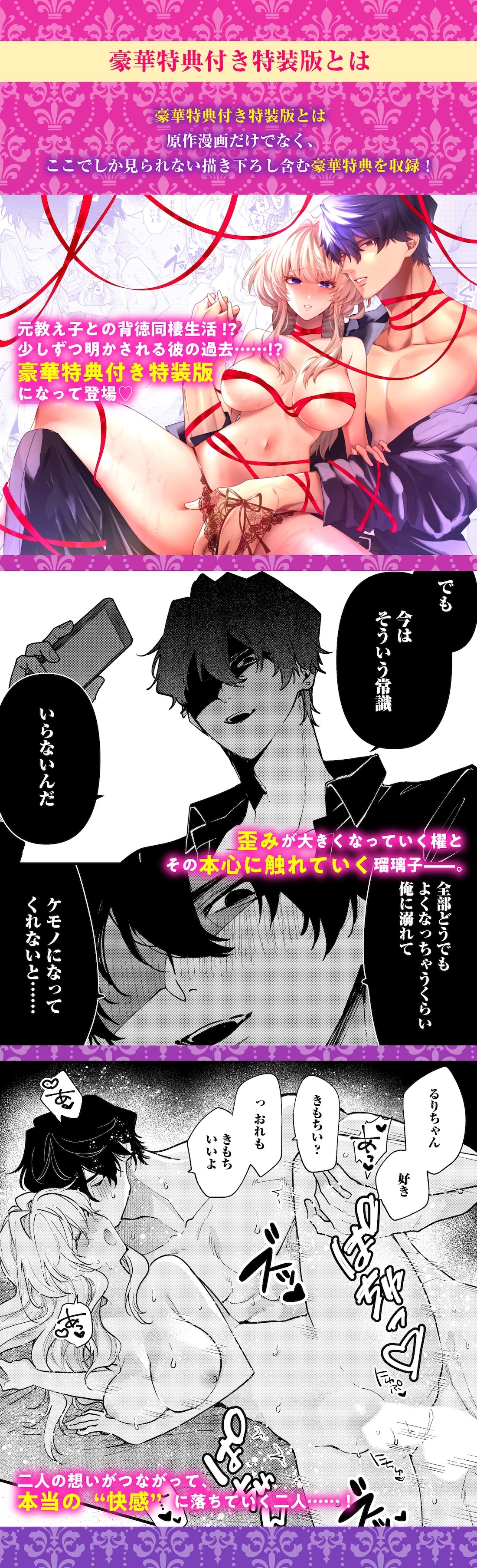 ▼内容▼ 【元教え子×教師の同棲生活!?歪む熱情は二人を繋ぎ、明かされる過去…!】 (1)本編 スマートフォン版では【あとがきイラスト、設定資料やラフ】はブラウザ視聴のみ可能となっております。■特装版の推しポイント
