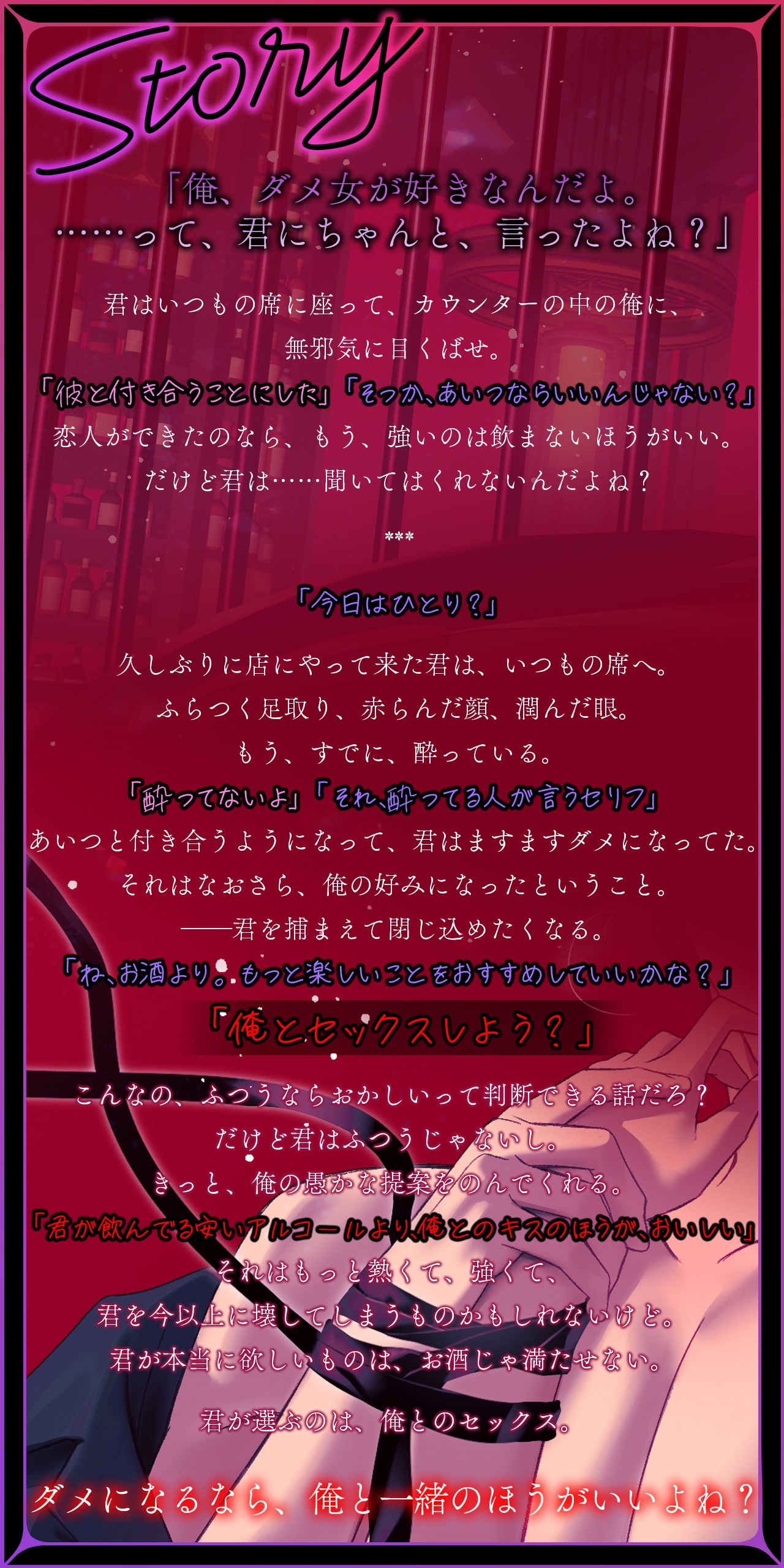【欲しいのは、お酒?セックス?俺?それとも、あいつ?】禁酒監禁NTR【依存ドロ沼嫉妬SEX】 のボイス・ASMRは無料で聴けたりしないの?