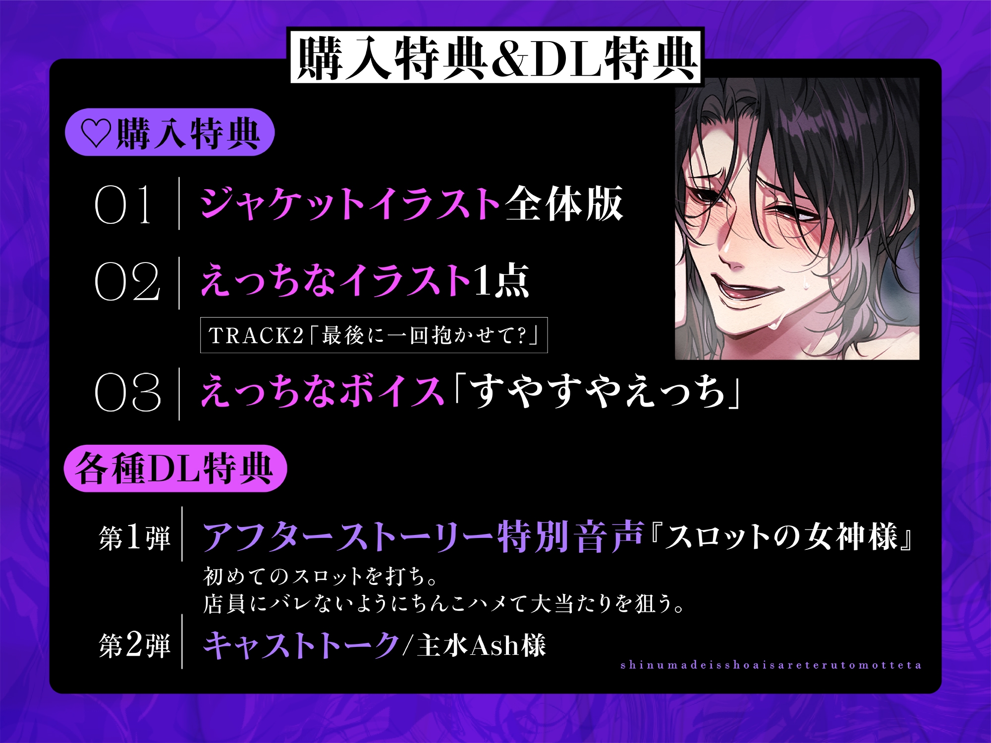 「ほら、こっちおいで~ちゅ~してやるから機嫌直して♪ちゅっちゅっちゅ~♡」 ◆元カノSさん ◉TRACK1「スロット男はろくなもんじゃない」(04:30) ◉TRACK2「最後に一回抱かせて?」(29:25) ♡購入特典 ■クレジット / キャンペーン開催中最後に一回抱かせて?俺明日からホームレス生活やろ~最後くらい俺のわがまま聞いてや~
