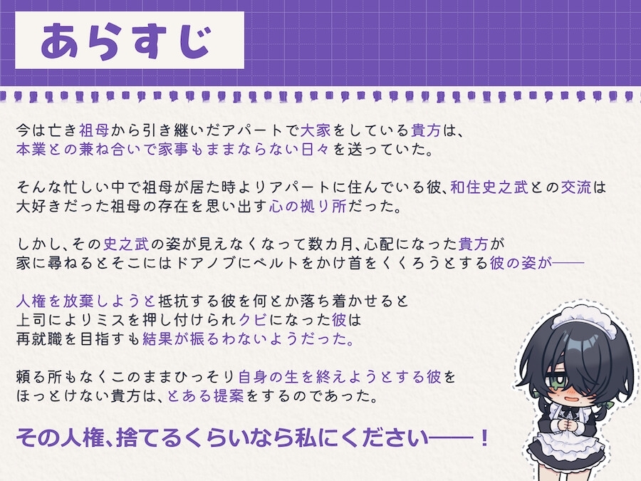 史之武さんは人権を捨てたい!〜発情雄ちんぽで∞倍恩返し ボイス・ASMRの情報をお知らせします!