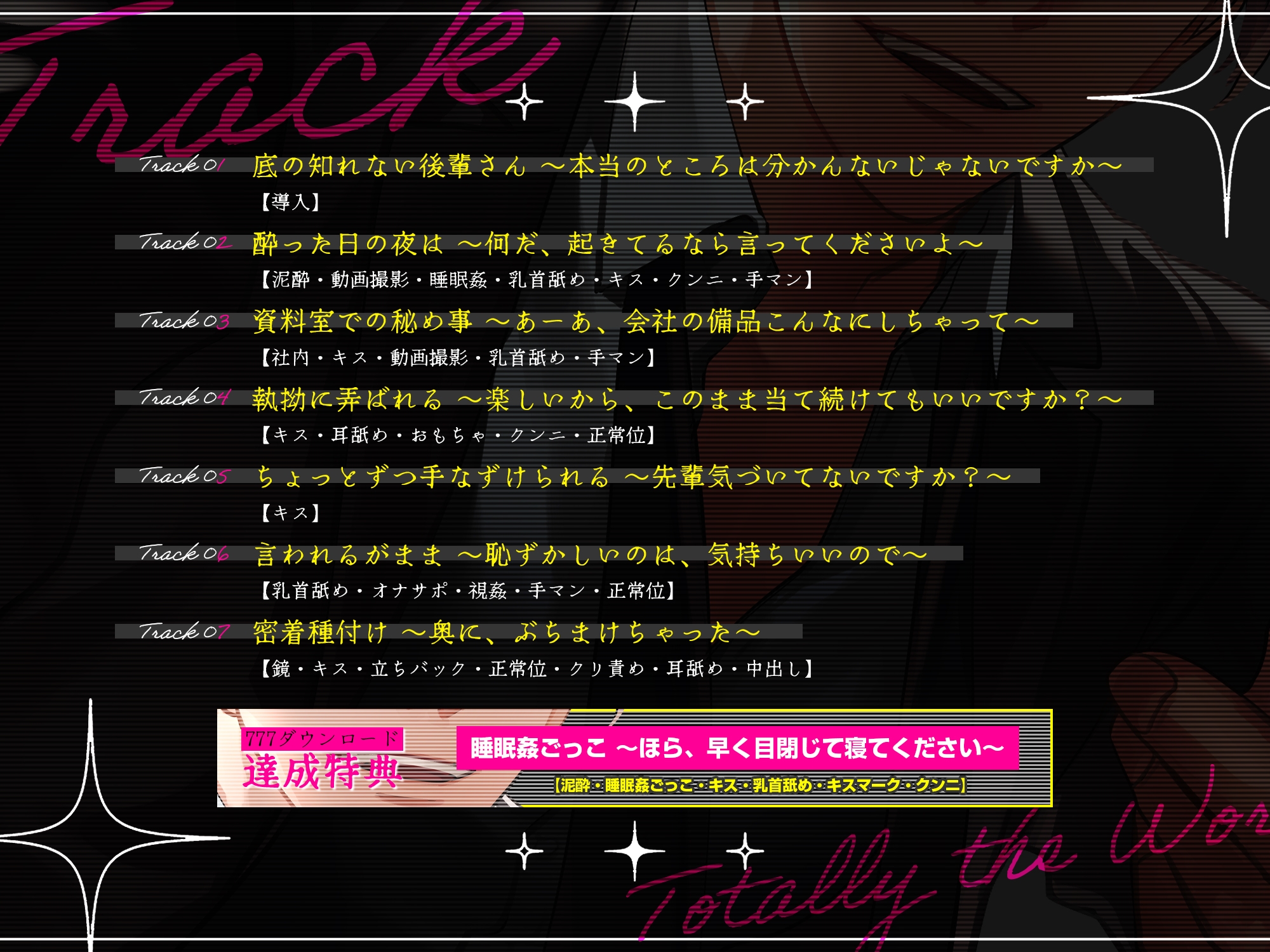 ジャンルASMR バイノーラル/ダミヘ 先輩/後輩 オフィス/職場 退廃/背徳/インモラル すやすやえっち 言葉責め しつけ