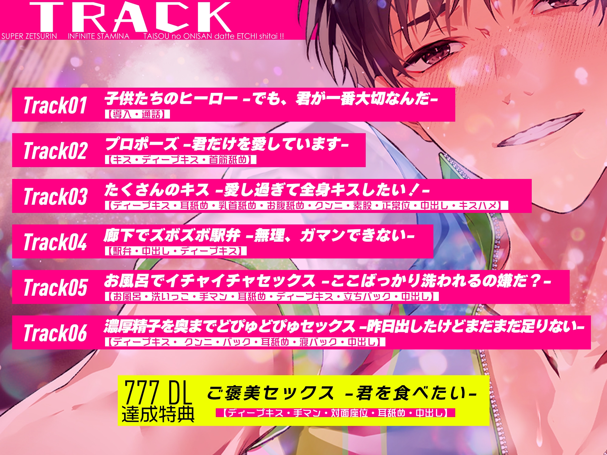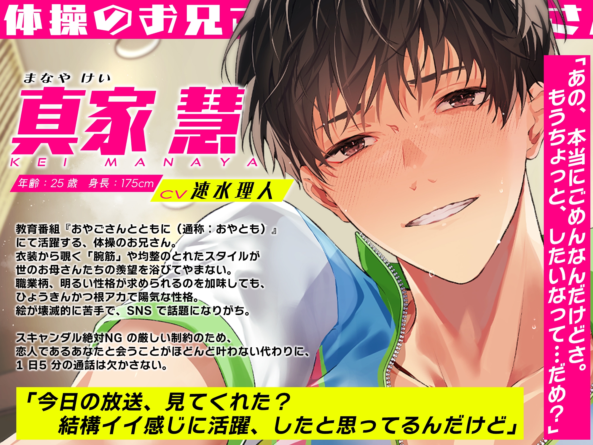あなたの恋人は体操のお兄さん、真家 慧(まなや けい)。 名前:真家 慧(まなや けい) 通常(約1時間39分)、777DL達成特典込み(約1時間56分) ◆トラック4 廊下でズボズボ駅弁 -無理、ガマンできない-(09:17) ▼サークル公式SNS▼ ぜひフォローしてくださいね♪結婚が確定した3年ぶりのエッチで、ず〜〜〜〜〜っとオナ禁していた恋人が止まらなくなってしまうお話。CV:速水理人様