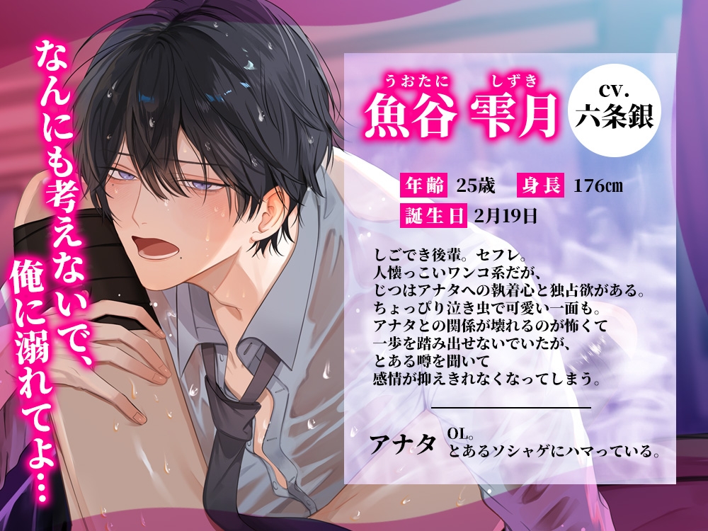 後輩でセフレの魚谷 雫月(うおたに しずき)をホテルの部屋で待っていたアナタ。 ――――――――――――――― ――――――――――――――― ◇声優◇限界まで大洪水のおまんこびしょ濡れえっち♡