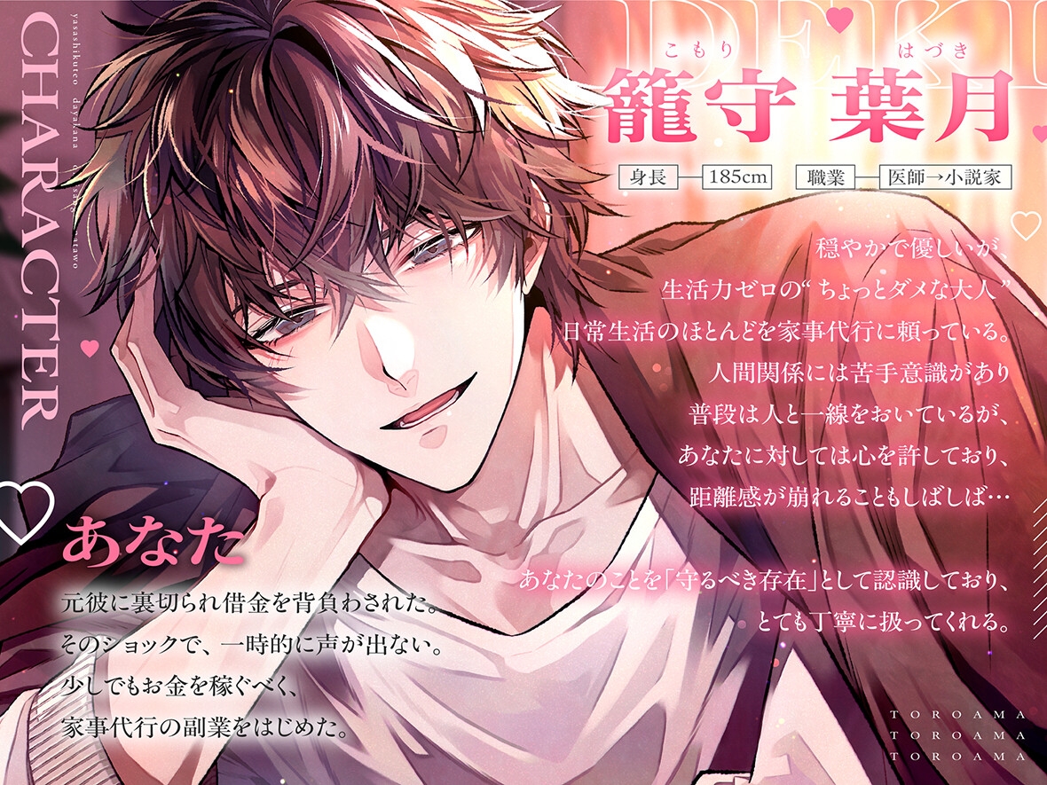 サークル名 ぷQ 販売日 2025年11月27日 0時 ジャンル 汁/液大量 連続絶頂 同居 クリ責め 潮吹き 執着攻め 中出し 耳舐め 声優 三橋渡 イラスト 伊馬宵時 シナリオ ねこまたみさ 音楽 うらうら 年齢指定 18禁 作品カテゴリ 乙女向け 作品形式 ボイス・ASMR ファイル容量 2.46GB 専売表記 DLsite専売 品番 RJ01504302 価格 1,485円~
