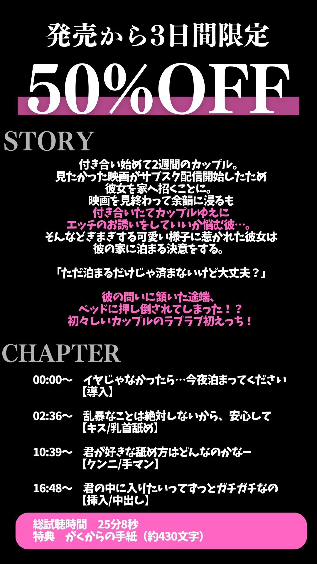 【3日間限定半額】ワンコ彼氏はお泊まりデートしたい!!!〜付き合ってはじめてのドキドキえっち♡〜(CV:がく×シナリオ:悠希) ボイス・ASMRの情報をお知らせします!