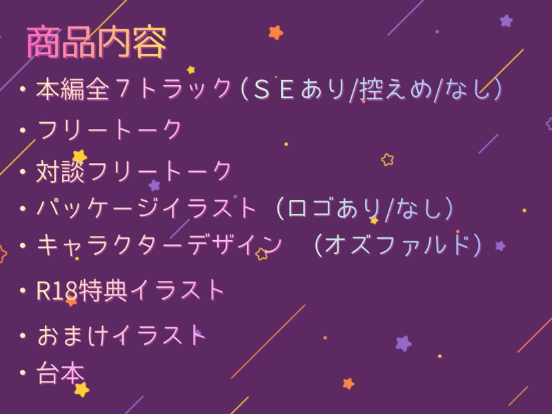 ◯メインキャラクター ◯サブキャラクター ◯ヒロイン(=あなた♡) 総再生時間(3時間22分27秒) オズファルド・ベルフェゴーティ役:乃木悠星様(https://x.com/star_hoshikun_ )ストーリー