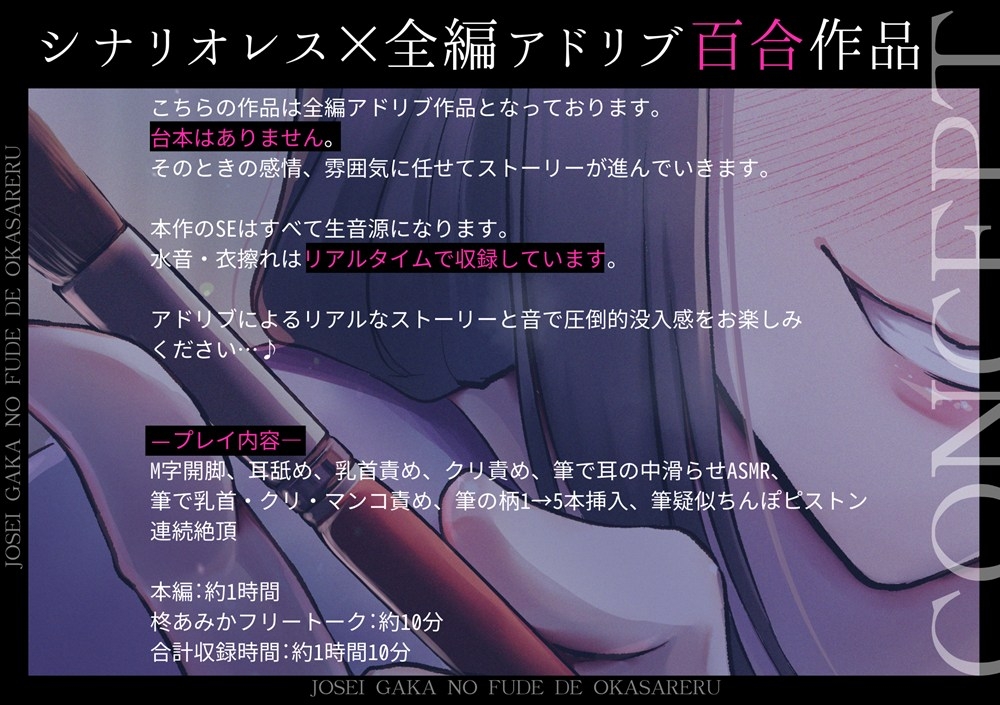 【百合】女性画家の筆で犯される~筆5本を膣奥に突っ込まれ筆疑似ちんぽで連続絶頂~【筆プレイ×シナリオレス作品】 のボイス・ASMRは無料で聴けたりしないの?
